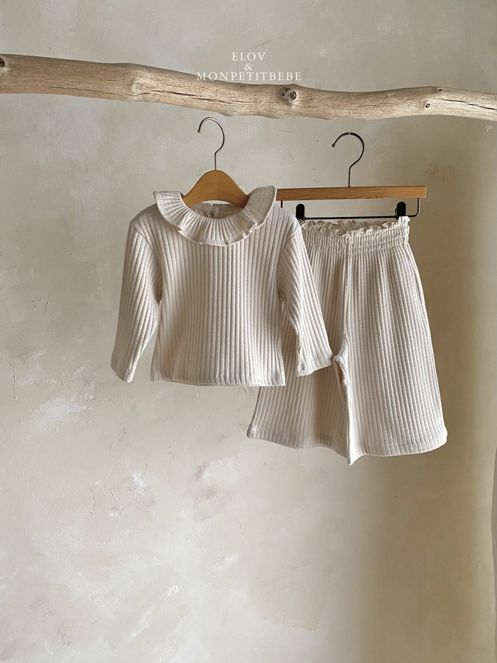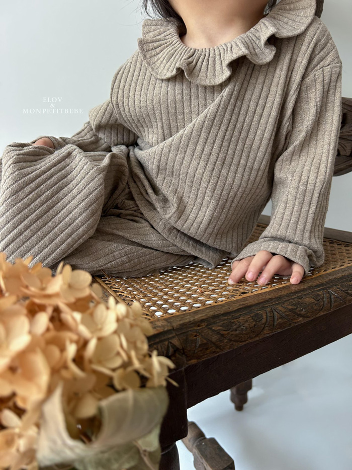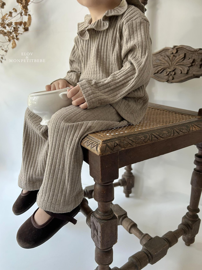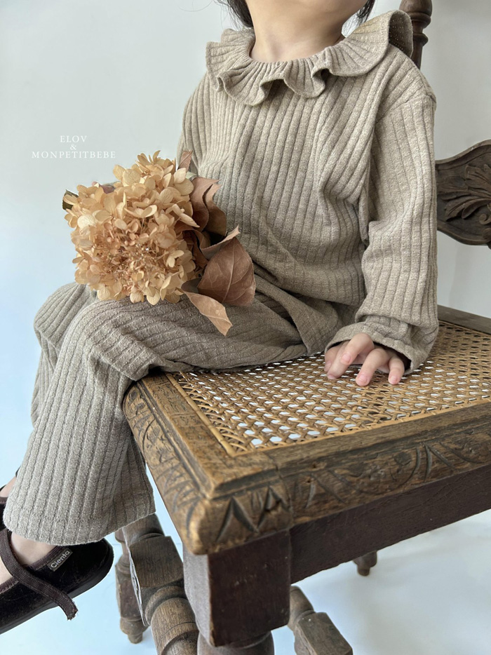 柔軟的坑條布料,親膚舒適,搭配領口荷葉邊設計,在簡約中增添一份甜美與可愛。日常單穿或搭配同系列褲款,都能展現小女孩的溫柔氛圍。
