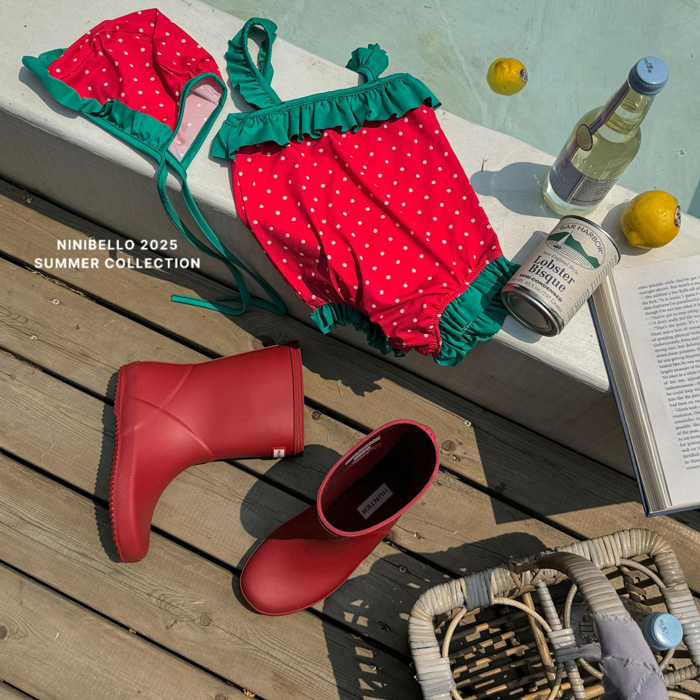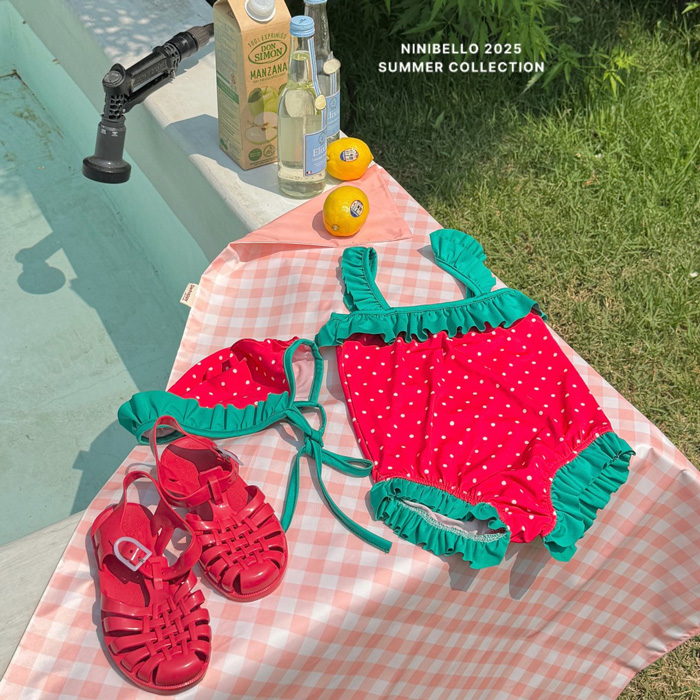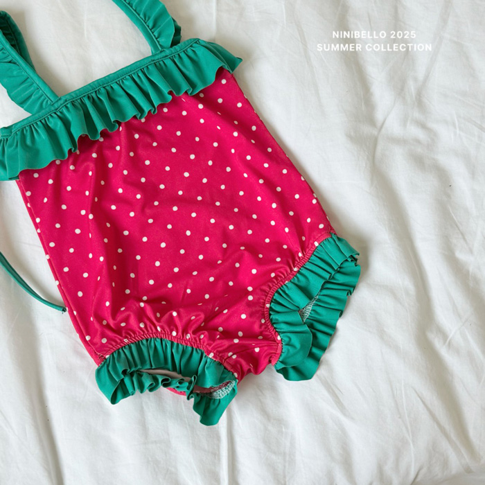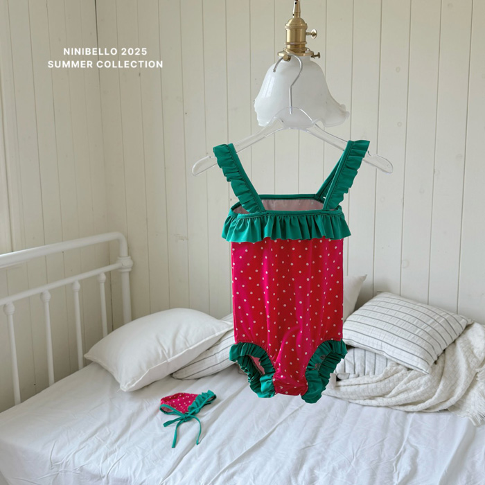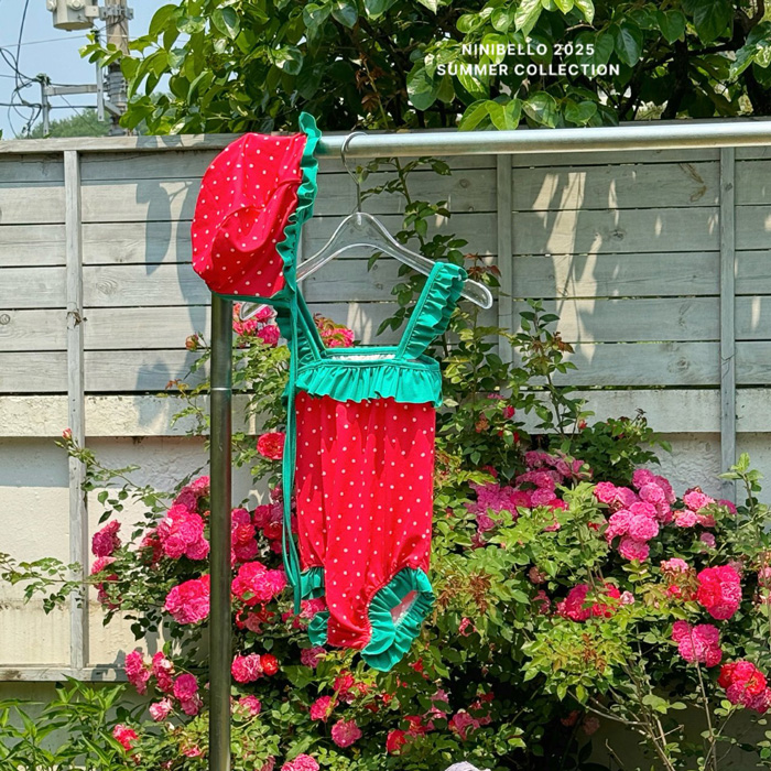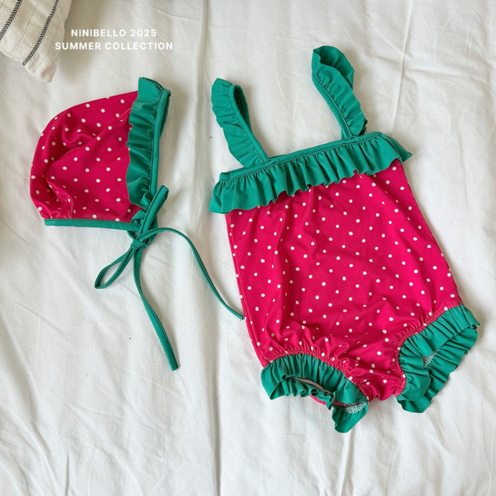 (現貨)【草莓點點泳衣】泳衣+泳帽套組
