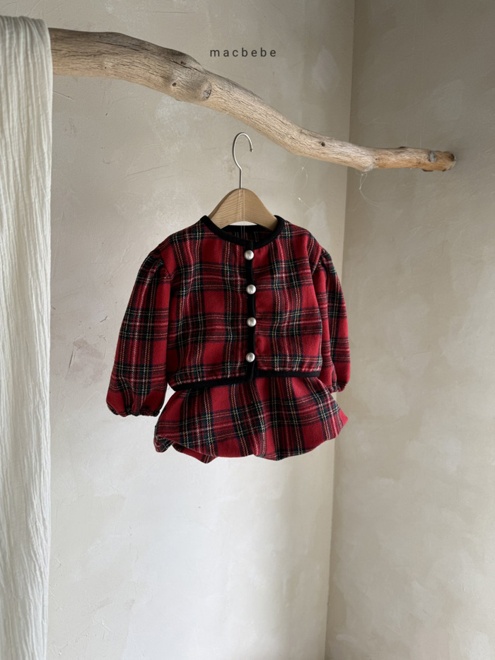 以節慶感滿滿的紅黑格紋打造冬日小淑女造型。柔軟的毛呢質地搭配珍珠鈕釦與澎袖短版設計,呈現出甜美與優雅兼具的氛圍。不論是聖誕派對、家庭聚會或日常出遊,都能成為寶貝的可愛焦點 ✨
