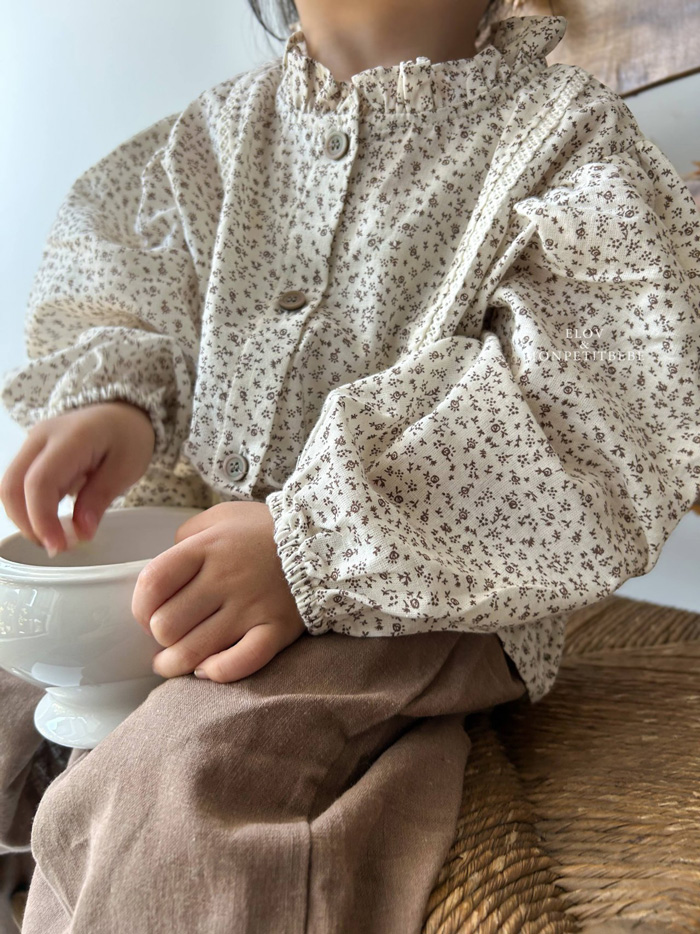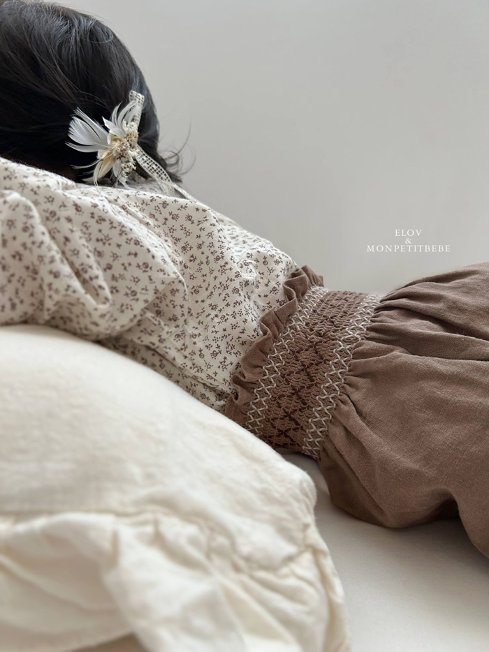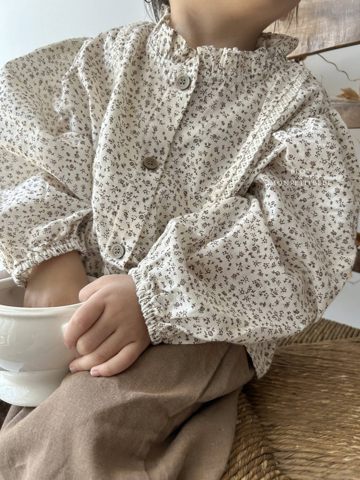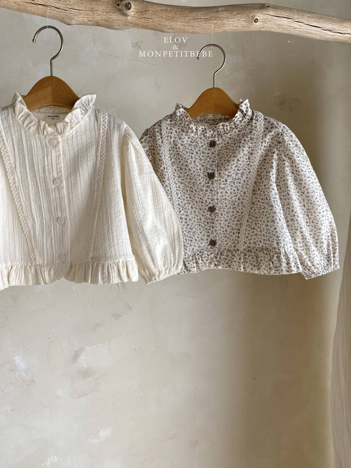 ✨ 特色:荷葉邊設計|壓紋/小花布料|兩色可選(素雅米白 / 碎花米杏)
