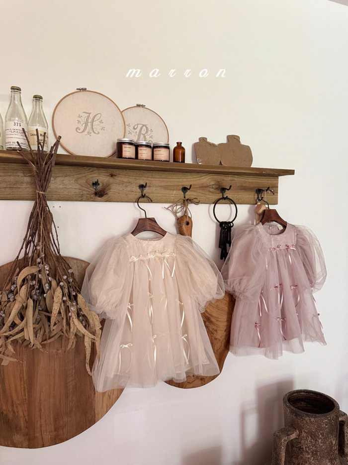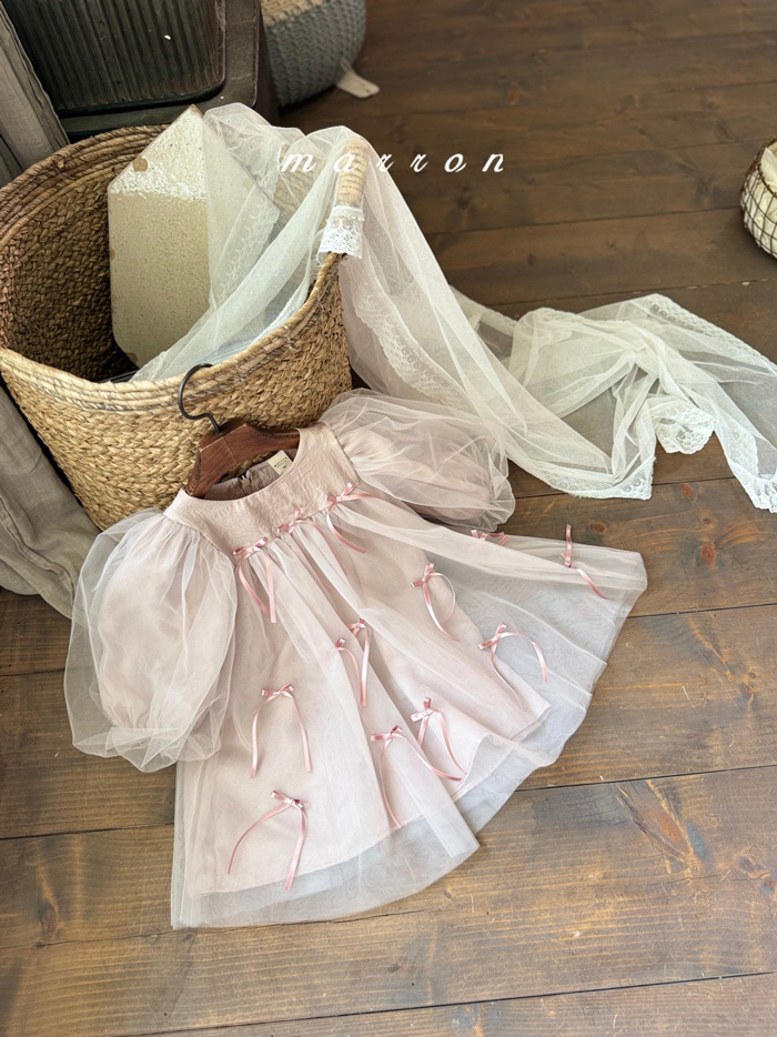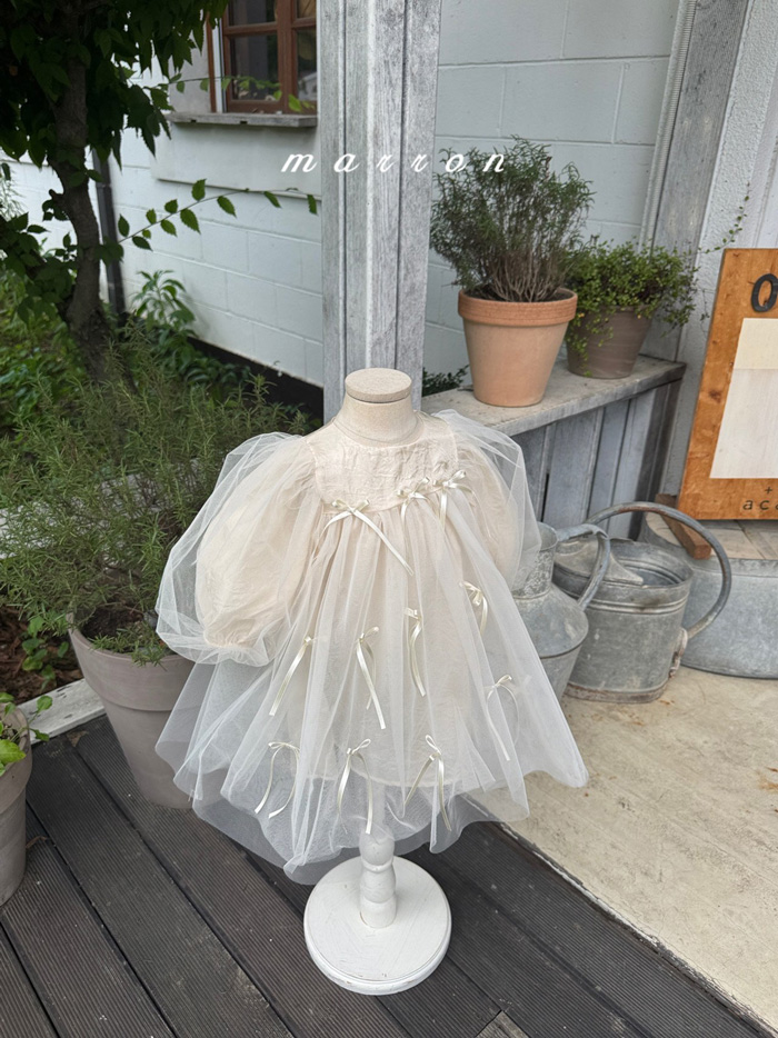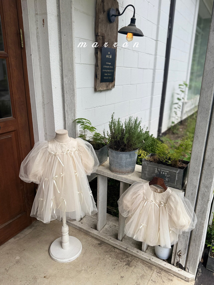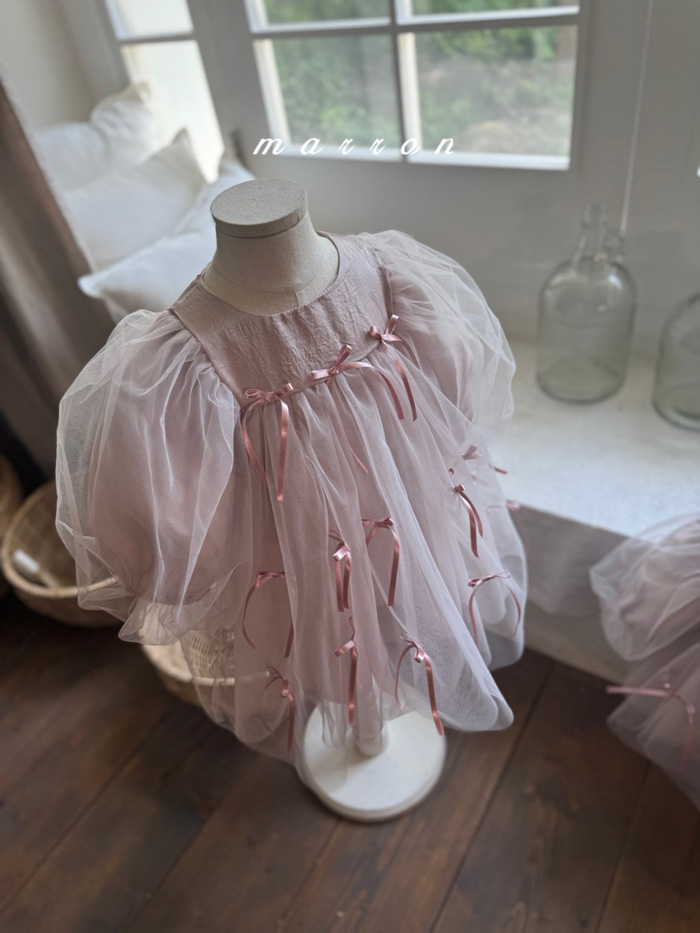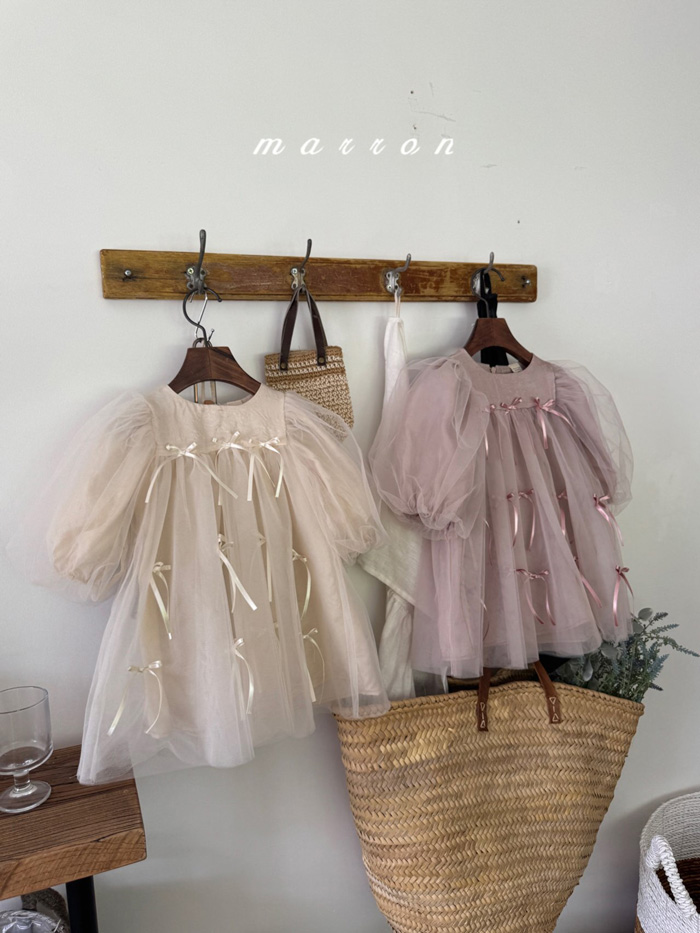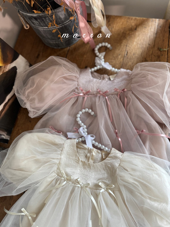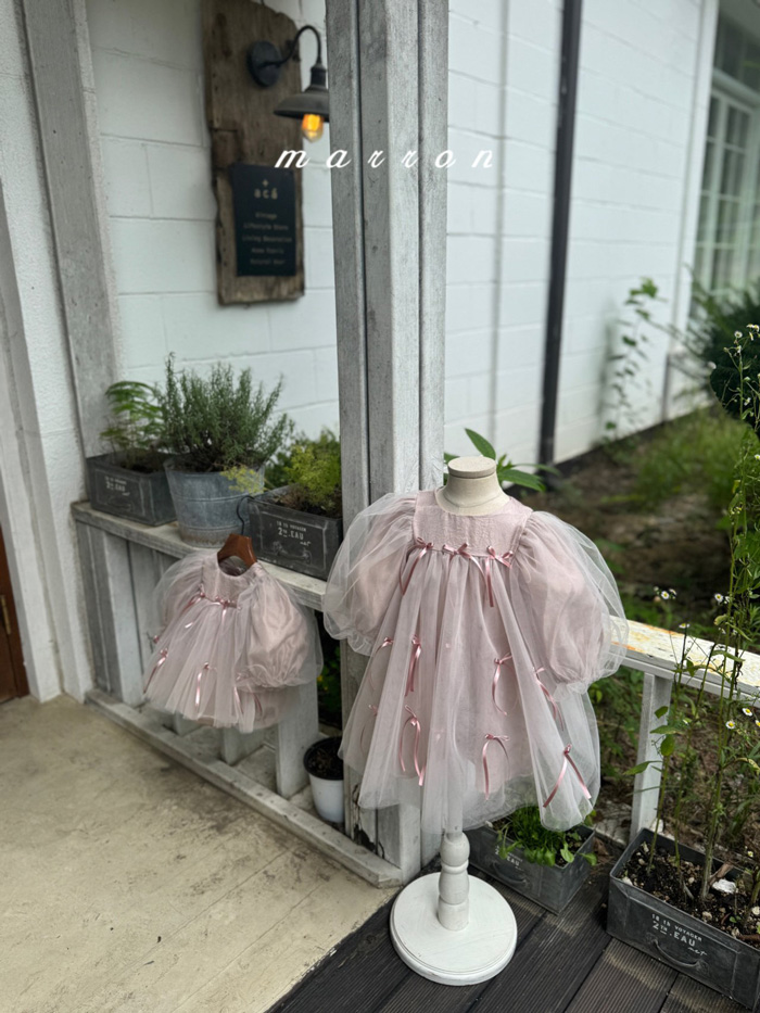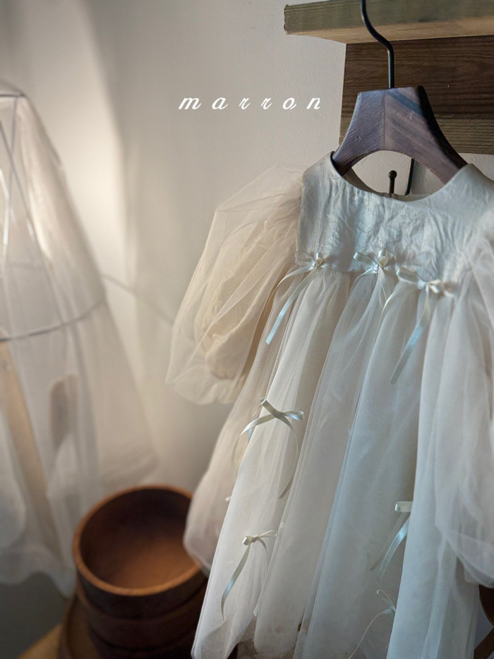 蝴蝶結薄紗洋裝 (2色)