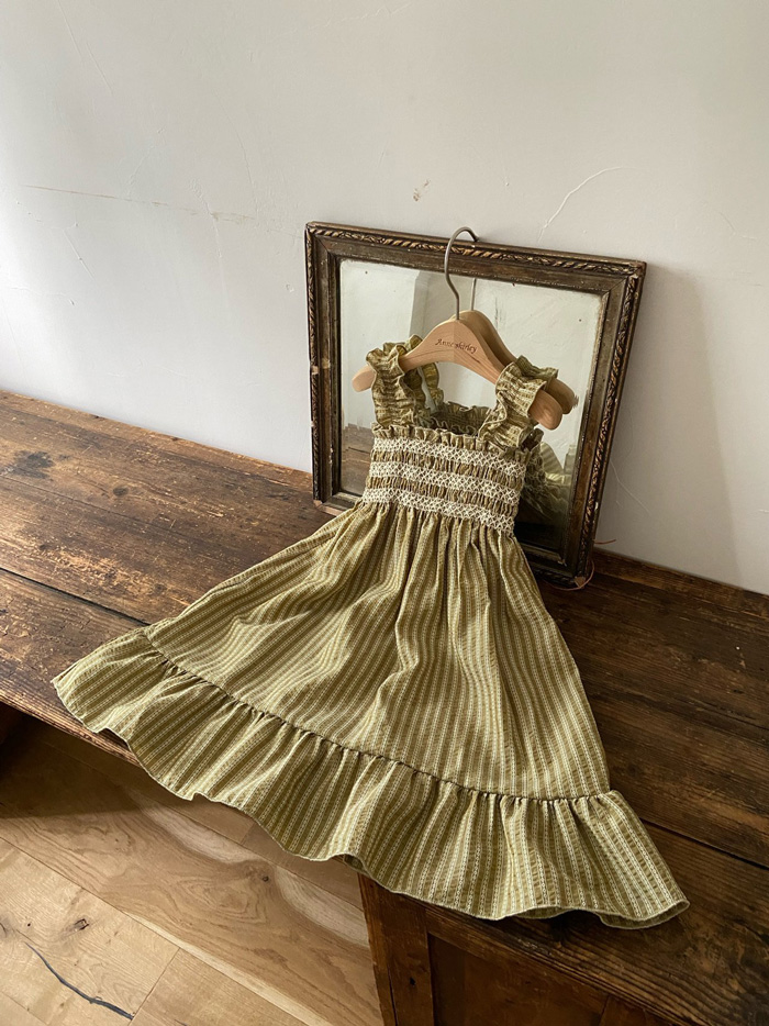 親子|復古碎格彈性吊帶洋裝
